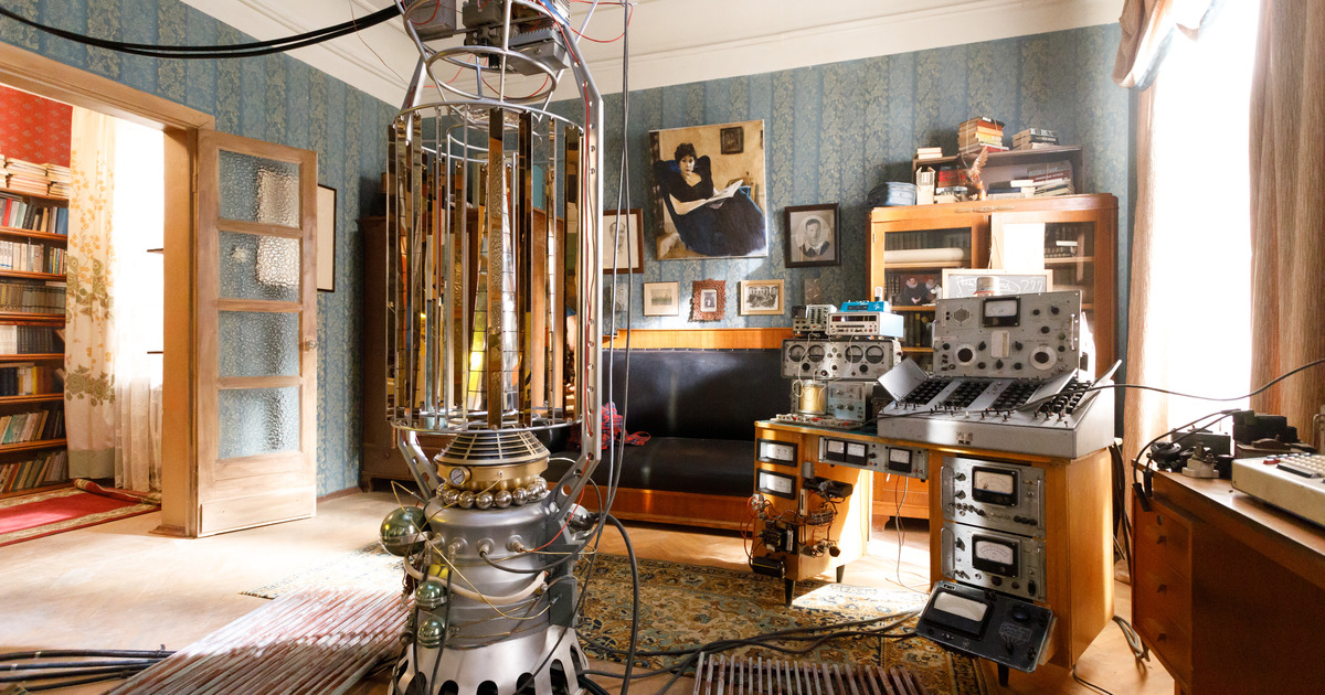 В создании ретрополовины квартиры участвовали все члены съёмочной группы: киношники приносили свои вещи родом из восьмидесятых. Центральный элемент машины времени сконструировали, опираясь на дизайн хрустальной люстры и советских космических спутников.