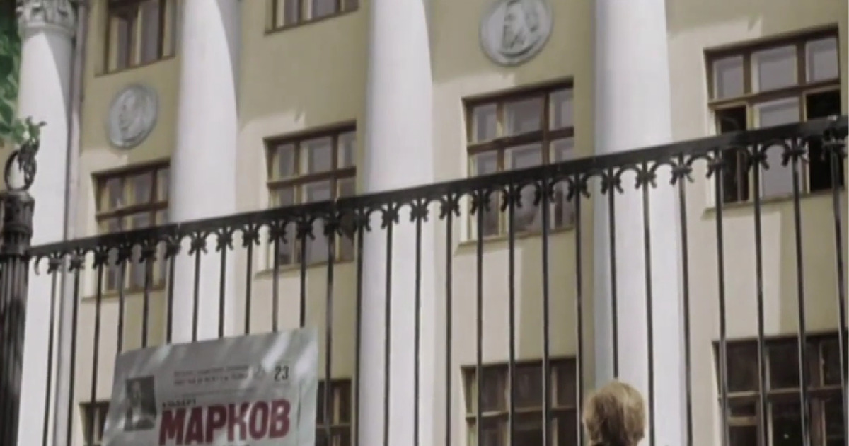 Именно в этот ВУЗ мечтала поступить главная героиня фильма Фрося Бурлакова. В кадре можно наблюдать фасад академии, являющийся образцом сталинского классицизма.