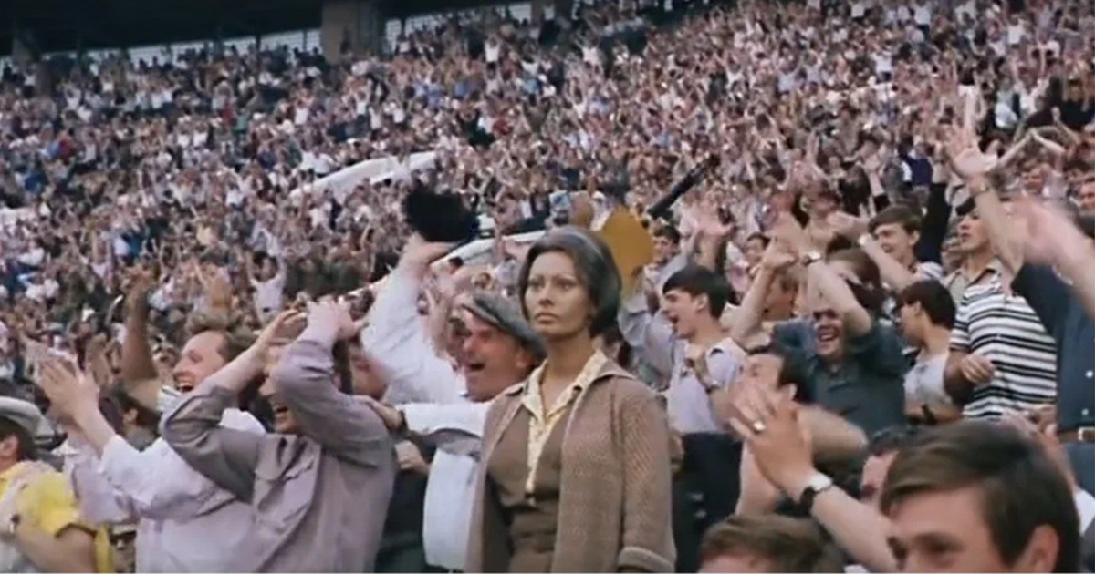 Софи Лорен на стадионе Лужники («Подсолнухи»)