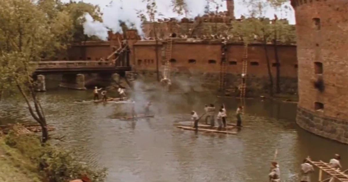 В латышской комедии им выпала задача сыграть роль внешних укреплений средневековой Риги.