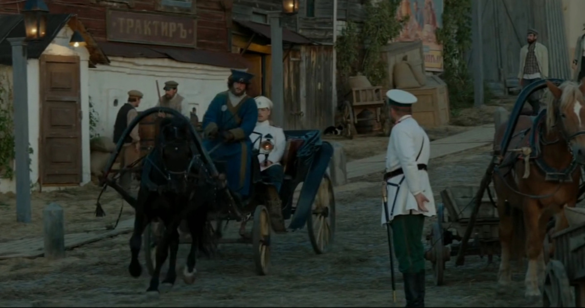 Главный герой спускается на экипаже к пристани.