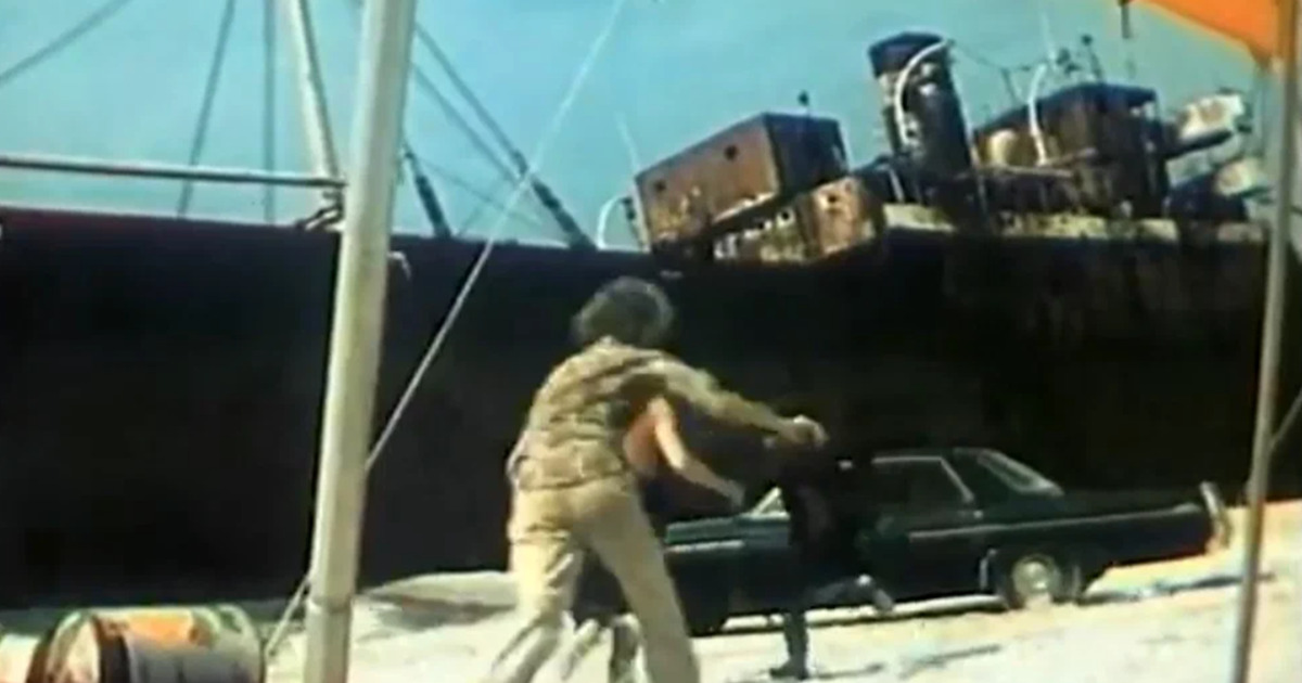 По сюжету, возле остова судна похитившие двух подростков гангстеры разбили свой лагерь.