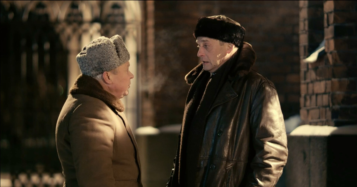 Во дворе бывшего польского костёла произошёл серьёзный разговор капитана госбезопасности Ивана Бережного (Александр Домогаров) и старшего майора госбезопасности Андрея Ильича Прохорова (Василий Мищенко).