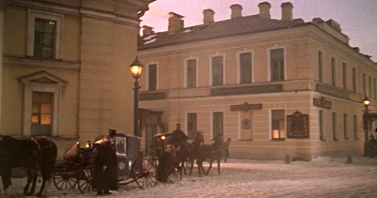 После вечера в Таврическом дворце Пётр Вяземский едет домой. По пути у него ломается карета: «ось пополам». Его «спасает» Жуковский и довозит на своей карете до дома. Они говорят о Пушкине: о его характере и ситуации с Дантесом. Практически в каждом кадре фильма фигурируют кареты как основной транспорт той эпохи. Весь такой реквизит был в плохом состоянии: каретам было более семидесяти лет. Они начинали свою жизнь ещё в Российской империи, а одна даже в Париже. Руководил бригадой реставраторов Борис Козлов. Работа им предстояла огромная. Нужно было отремонтировать десяток экипажей и санок, восстановив разбитые кузова, дверцы, ходовую часть. Козлов лично помогал на съёмках. Так, в этом эпизоде ему пришлось прямо среди сугробов снимать колесо с купе Вяземского, изображая, по режиссерской задумке, сломавшуюся у кареты ось.
