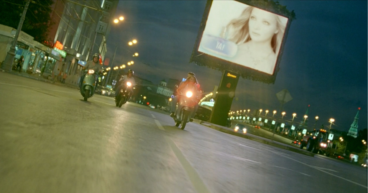 Герои фильма катаются по вечерней Москве. В этом кадре появляется вид на Большой Каменный мост.