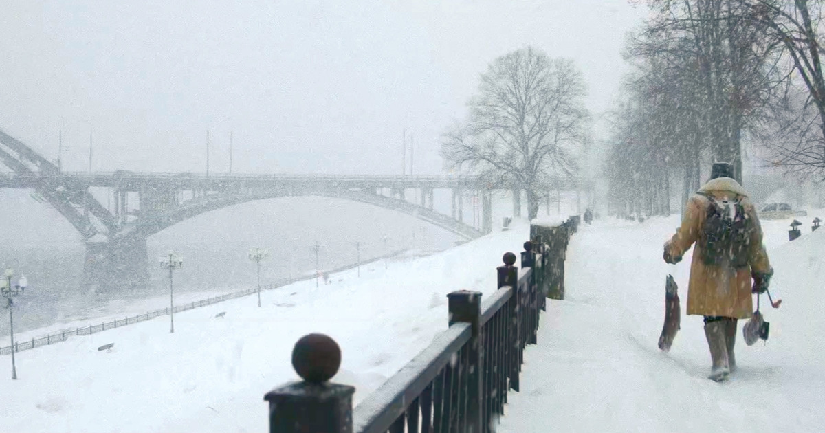 Короткая, но весьма симпатичная сцена с рыбаком, идущим под снегопадом с уловом, была снята в самом центре города, между Волжским мостом и зданием Исторического музея.