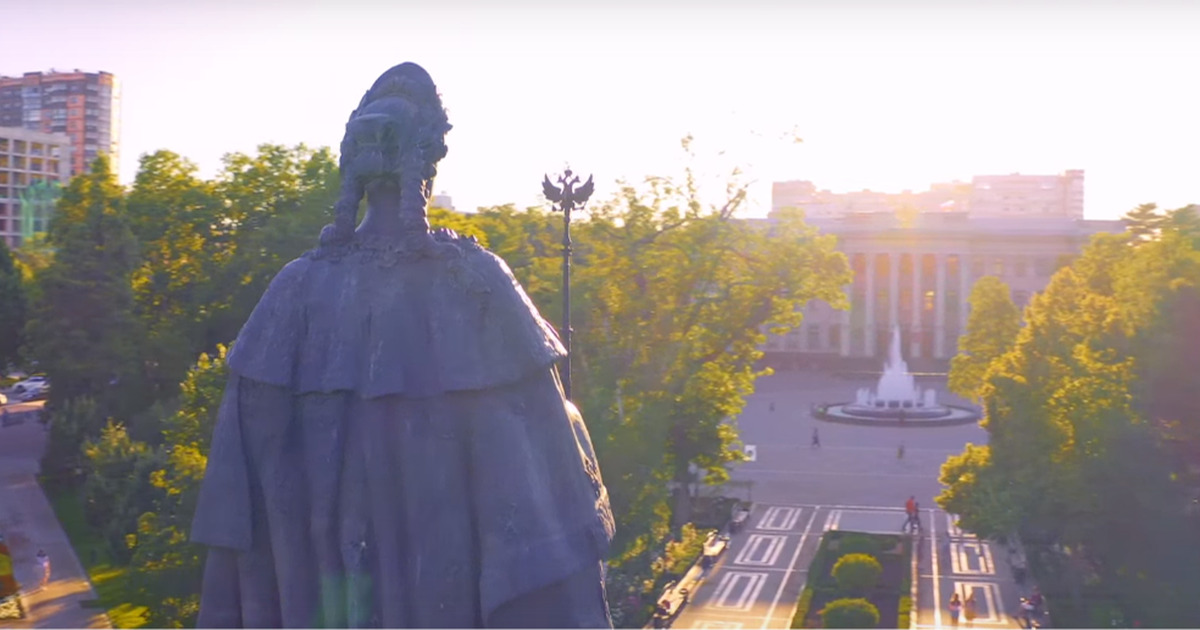 Монумент Екатерине II имеет непростую судьбу — автор идеи и скульптор Михаил Микешин скончался, так и не реализовав свой проект, а продолжил дело его коллега Борис Эдуардс. Однако в 20-ых годах прошлого столетия памятник был снесён. Торжественное открытие новой скульптуры состоялось в 2006 году.