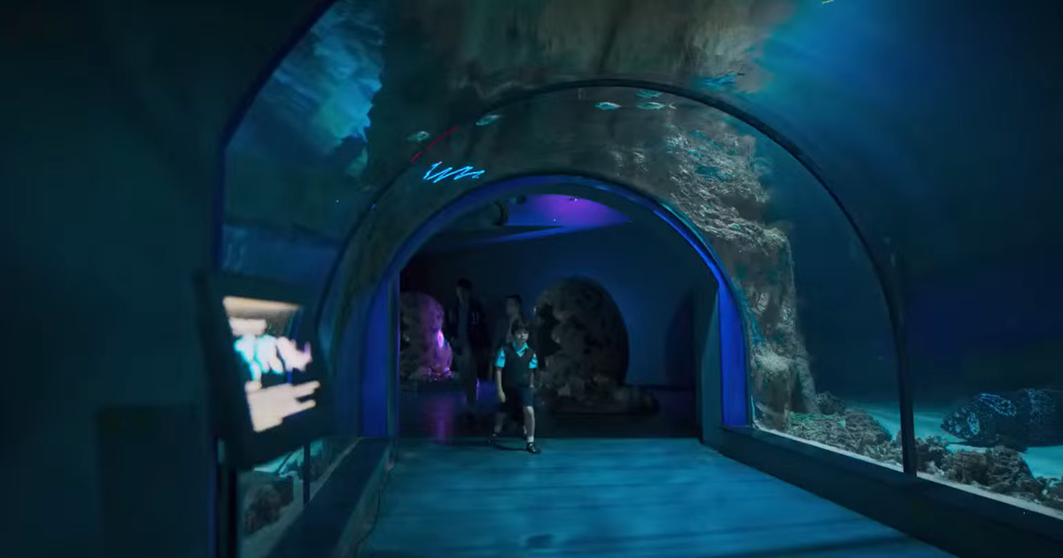 Океанариум на территории с ВДНХ с большим количеством аквариумов.