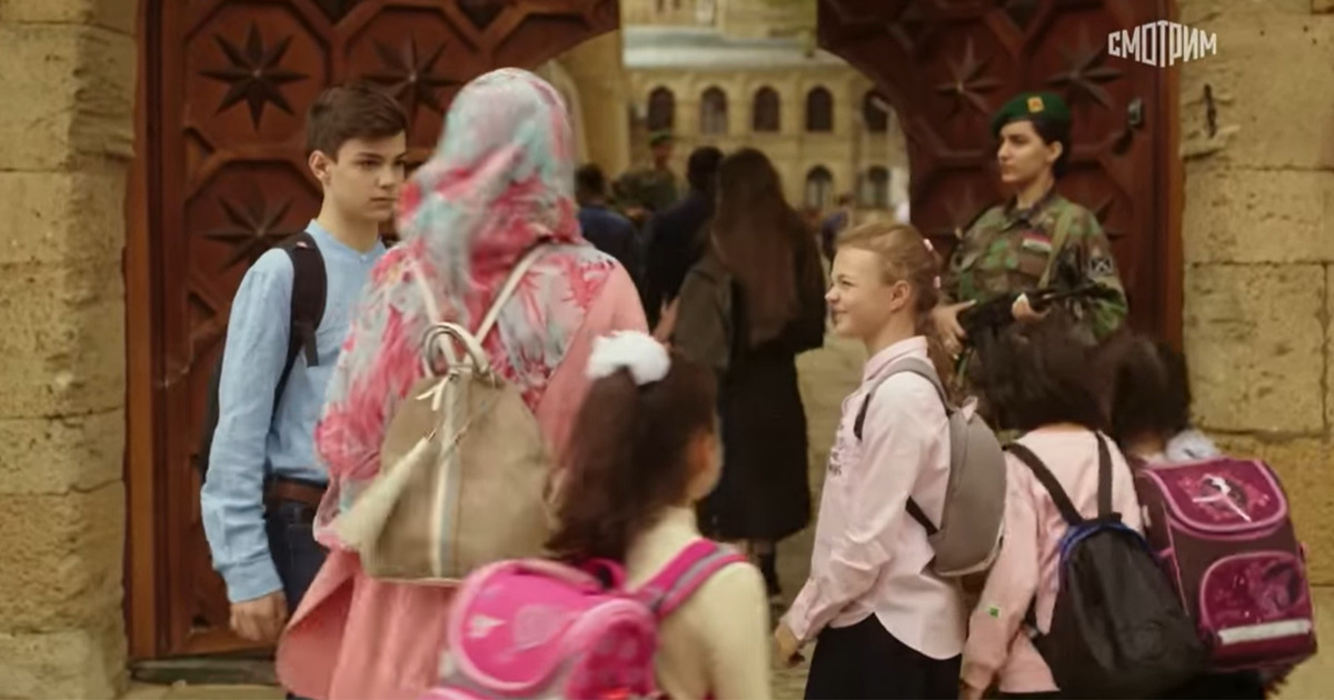 Вход в Джума Мечеть. Съемки эпизода со школой