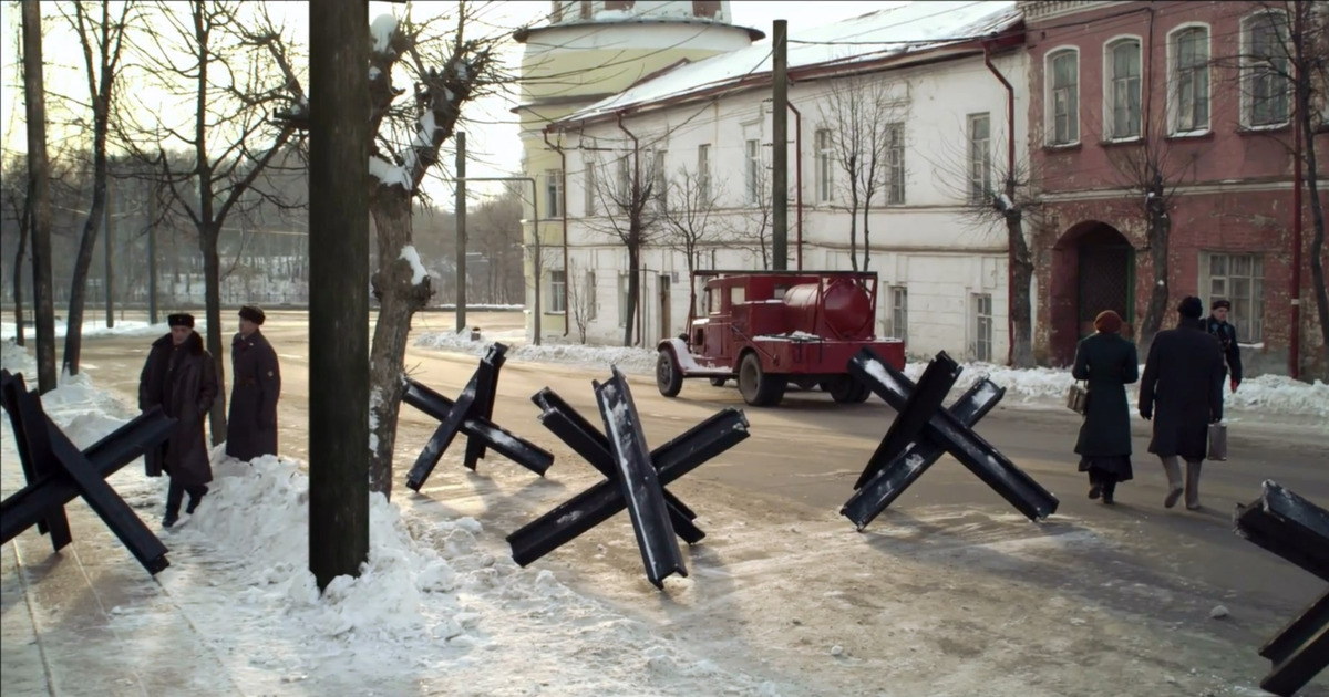 Сцена, где герой актёра Александра Домогарова ведёт важный диалог с коллегой и переходит дорогу среди противотанковых ежей, снималась на Стоялой улице, рядом с местными достопримечательностями - Лозовским (Журавлёвским) парком и Пожарной каланчой.
