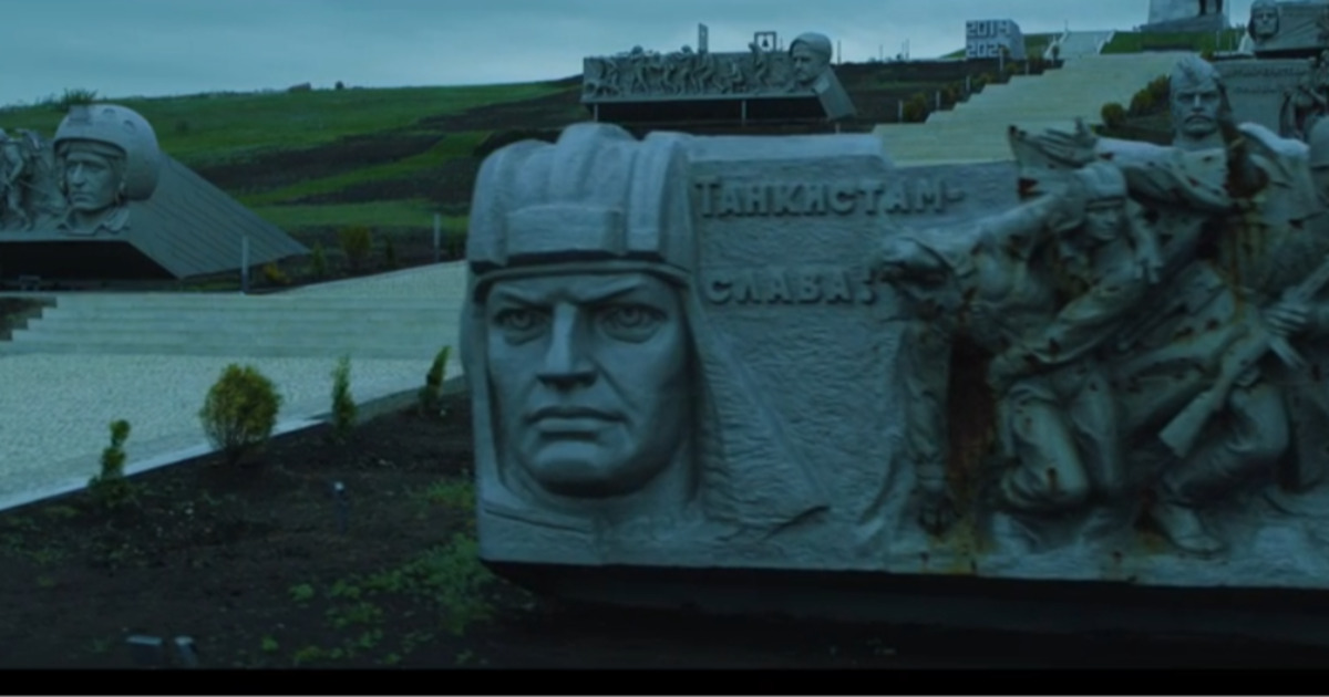 Герои в начале фильма «Блиндаж» приезжают на мемориал Саур-Могила - легендарный мемориал, посвященный павшим советским воинам.