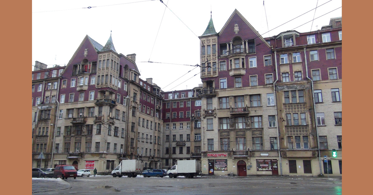 Жилой дом в стиле модерн был возведен в Петрограде под руководством архитектора И. И. Яковлева в 1913 - 1915 годах для купца 1-й гильдии М. Н. Полежаева. В марте 2026 года всё еще продолжался ремонт дома, начатый летом 2023-го.