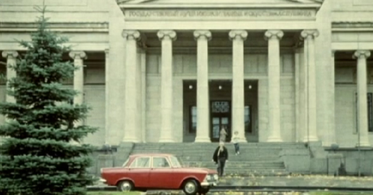 Главное здание было построено в конце XIX начале XX века на месте, где когда-то располагался конюшенный двор. Проект архитектора Романа Клейна предполагал возведение античного храма искусств в неоклассическом стиле. Примечательно, что колоннада в увеличенном масштабе воспроизводит пропорции одного из главных памятников древнегреческой архитектуры — храма Эрехтейона, посвящённого Афине, Посейдону и царю Эрехтею. Воплощение грандиозного замысла потребовало много усилий: мрамор, необходимый для отделки фасада добывался на Урале, так как именно в этом регионе горная порода обладает необходимой устойчивостью к русским морозам. За внутренне оформление отвечал художник Игнатий Нивинский, благодаря которому вестибюль музея оформили в египетском стиле. Неудивительно, что этот ансамбль полюбился кинематографистам: памятник архитектуры, изобилующий декором и поражающий масштабом, становился украшением любого фильма.