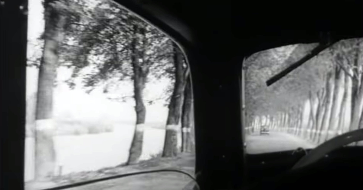 Старый фильм запечатлел для нас вид автотрассы Калининград - Москва в районе города Гвардейска. Слева в кадре видна река Дейма, вдоль дороги стоят многочисленные деревья - типичная картина для Восточной Пруссии и послевоенного Калининграда. В наши дни дорога уже не имеет федерального значения, так как в 1996 году открыт новый мост через реку с современным скоростным шоссе.