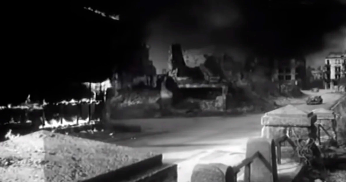 Древний кенигсбергский Альтштадт в фильме Михаила Ромма «Секретная миссия» в 1950 году предстаёт в виде унылых руин с торчащими ввысь остовами труб и фрагментов фасадов. Каменные столбики с пирамидальными навершиями - остатки ограды южной террасы замка Кёнигсберг.
