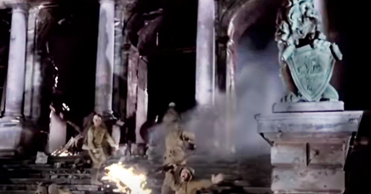 Начальные кадры боя, в котором Георгий Махарашвили находит своего сына, снимали именно здесь. В фильме хорошо видно и само здание, его главный вход со знаменитыми львами, а также часть входного вестибюля. Но интерьер здания снимали уже на руинах других зданий Калининграда - Дома Правительства Восточной Пруссии и замка Кёнигсберг.