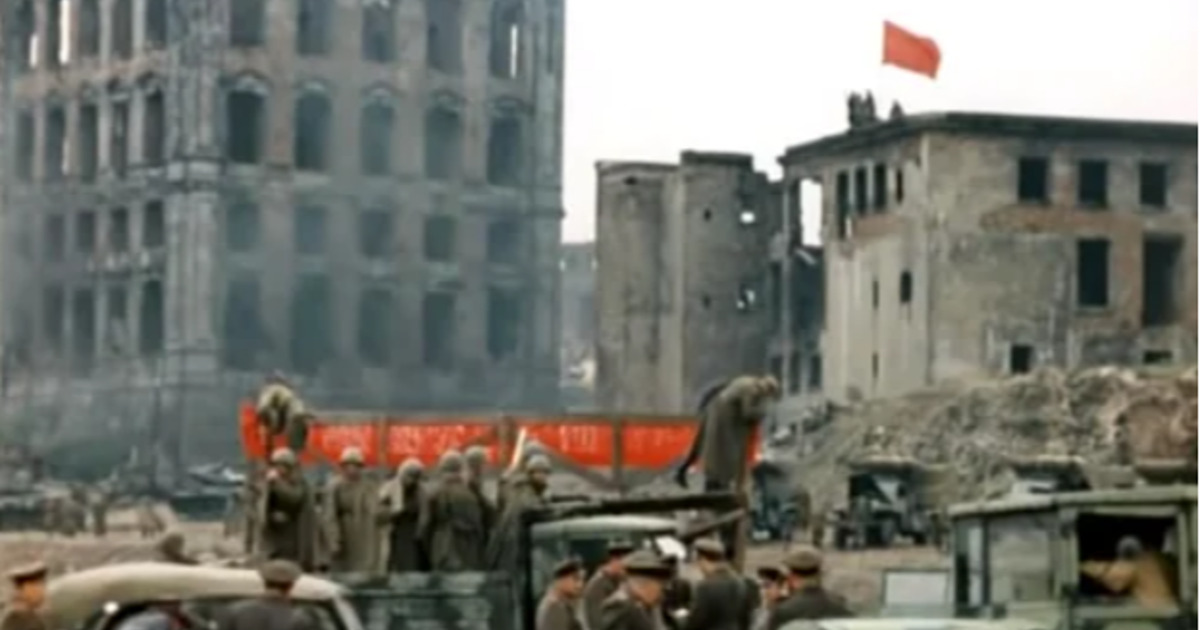Руины Рейхсбанка и флигеля Унфрида замка Кёнигсберг в фильме «Женя, Женечка и «катюша»