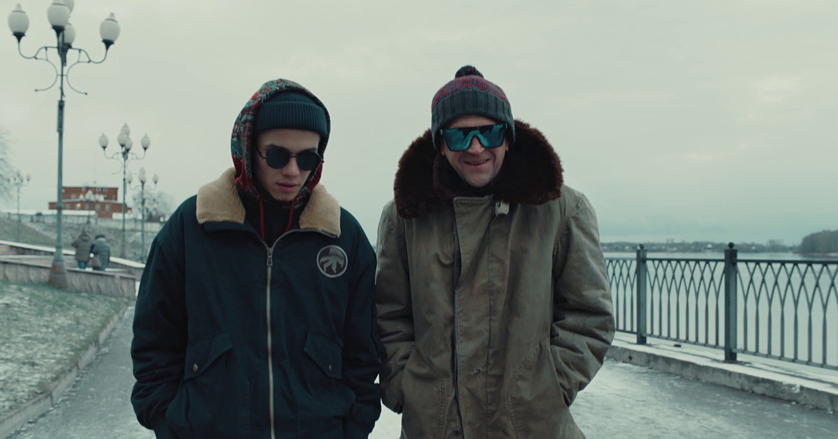 Надев чёрные очки в ноябре для маскировки, главные герои в исполнении Рузиля Минекаева и Тимофея Трибунцева прогуливаются по набережной реки Волги, направляясь к «месту убийства» молодой актрисы местного театра.