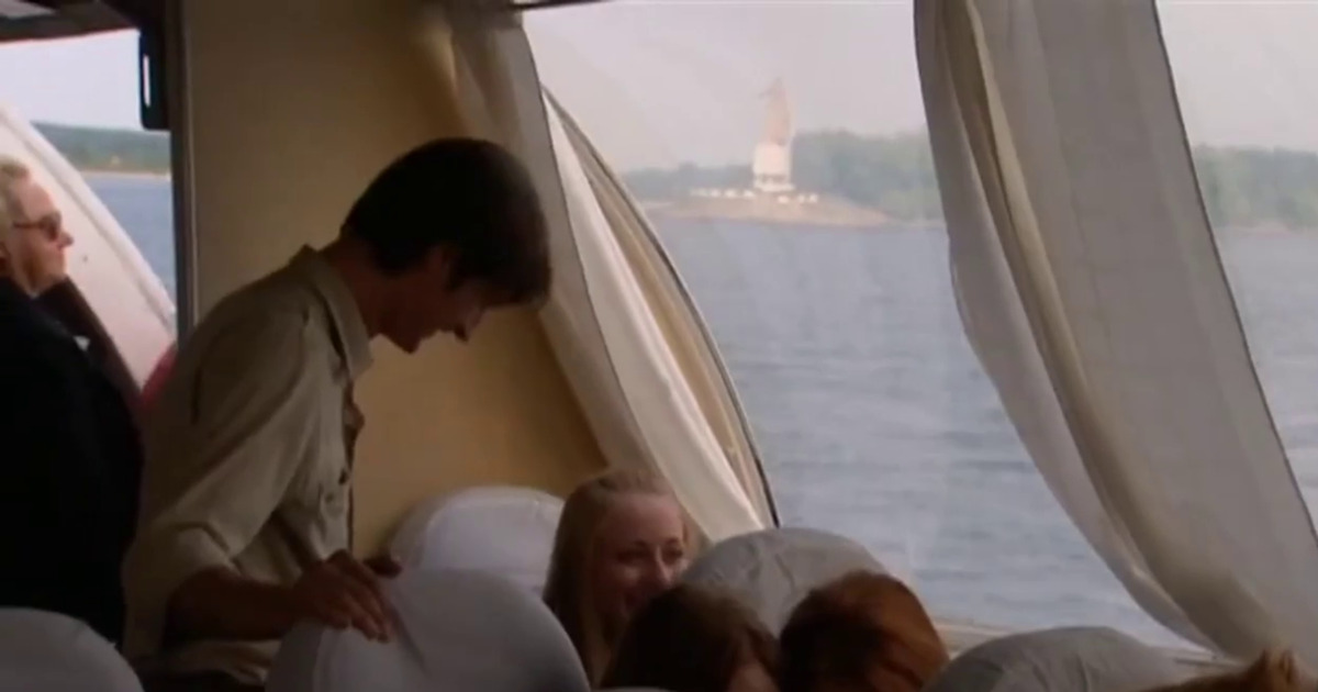 В одном из коротких эпизодов комедии герои проплывают на водном транспорте мимо одного из главных символов города Рыбинска.