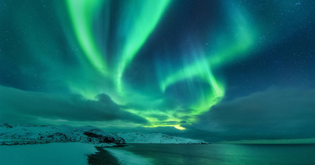 Северное сияние возникает из-за солнечных вспышек: частицы, выброшенные Солнцем, попадают в магнитное поле Земли и устремляются к полюсам, сталкиваясь с атомами кислорода и азота в атмосфере. Это взаимодействие создаёт переливы света — зеленые, желтые и красные оттенки вызваны кислородом, а синие и фиолетовые — азотом. Высота столкновения частиц влияет на неоднородность и динамику сияния.