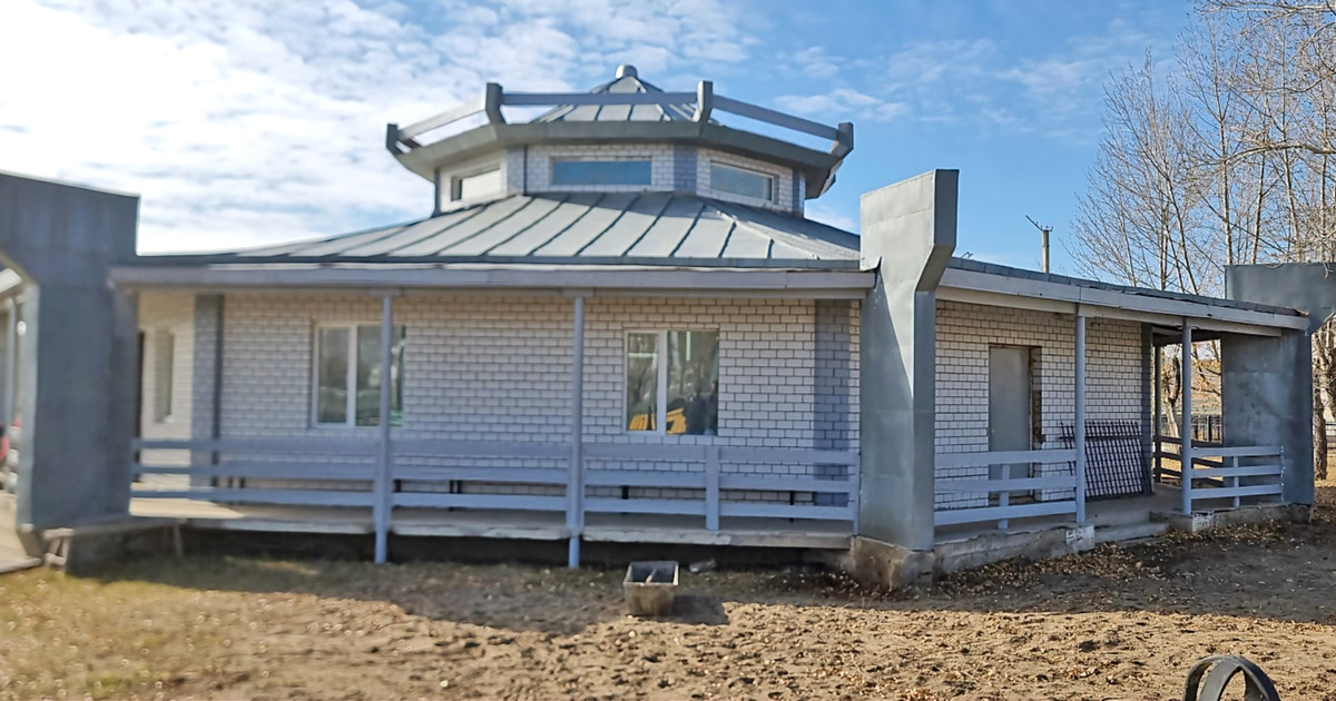 Здание в форме юрты с расписным потолком, где изображены быт сельского труженика и традиции кочевого народа.