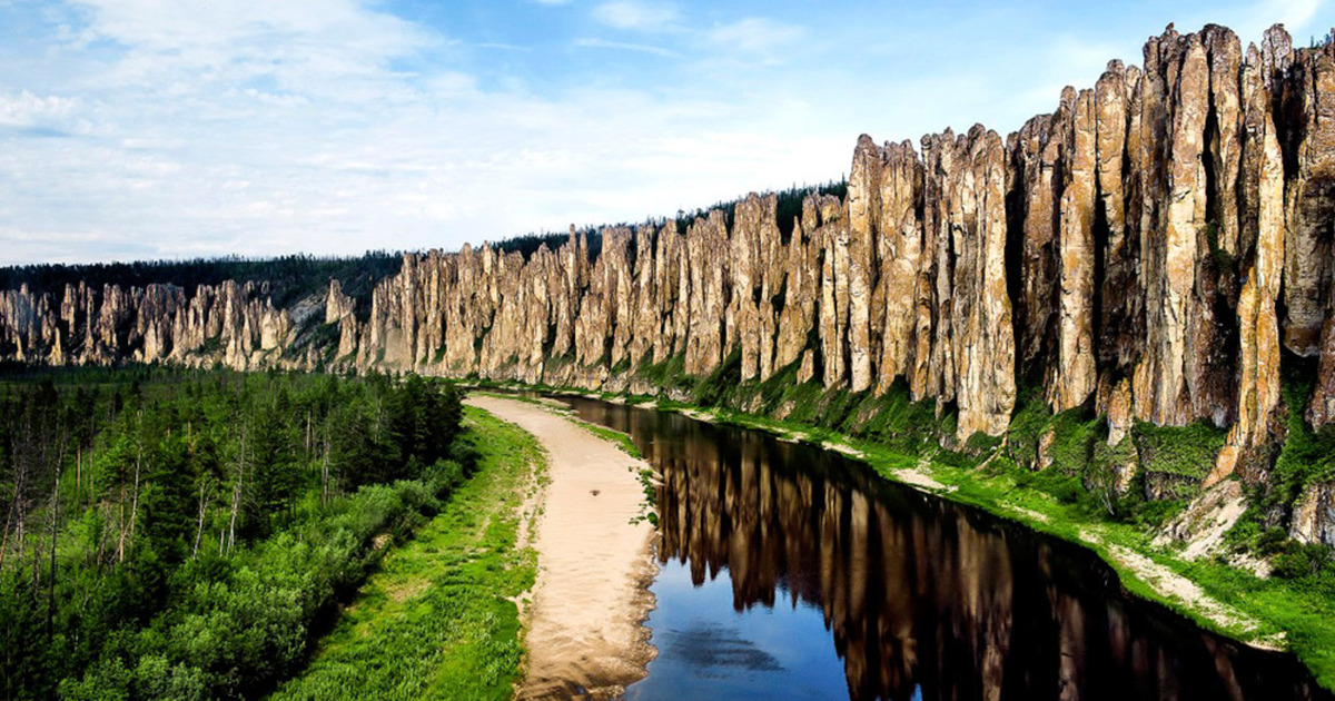 Уникальный геологический памятник природы на берегу Лены в Якутии. Каменные образования высотой до 100 метров тянутся вдоль реки на протяжении около 40 км. Локация с сильной визуальной экспрессией, подходящая для приключенческих, исторических и фантастических проектов.